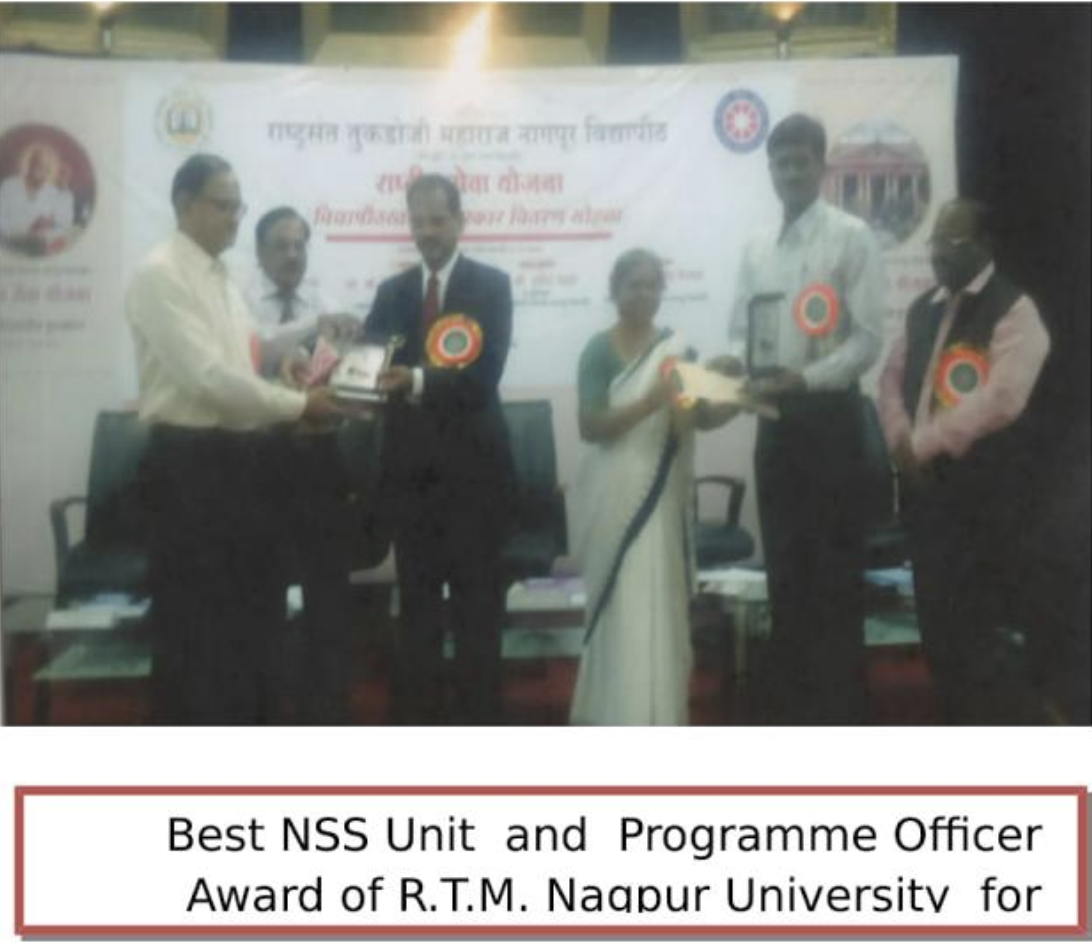 - The unit was adjudged the Best NSS Unit by R. T. M. Nagpur, University in 2014-2015.